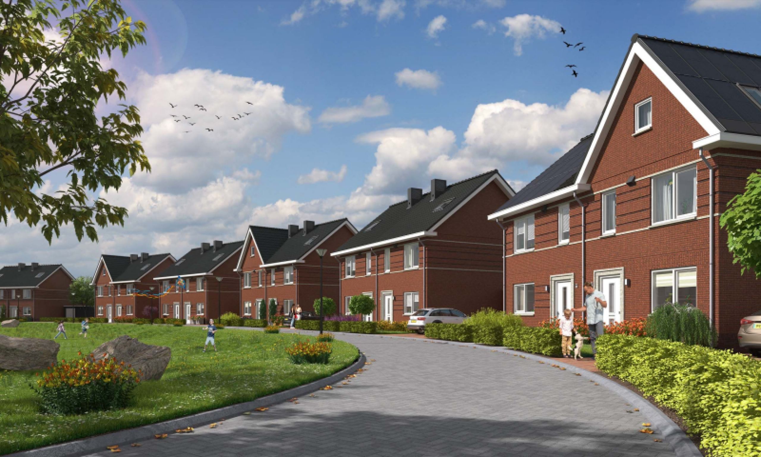 Aan een autoluw straatje komen 26 prachtige twee-onder-een-kapwoningen. Kom aanrijden, parkeer je auto op eigen terrein en ontdek de ruime woning. De 26 royale twee-onder-een-kapwoningen zijn ontworpen in een traditionele architectuurstijl. De woningen liggen grotendeels aan een groen hof die ook dient als wadi. Hier woon je heerlijk buiten, maar met de voorzieningen van de stad Breda om de hoek. Dat is woongenot. De rijke detaillering zoals de brede dakoverstekken, de grote ramen en de rollagen in het metselwerk ge¬ven deze woningen een klassieke tijdloze uitstraling. De woningen hebben een prachtige open woonkeu¬ken met grotendeels zicht op de groene binnenhof.